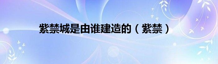 以上就是【紫禁城是由谁建造的,紫禁】相关内容。