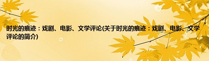 本文关于时光的痕迹:戏剧、电影、文学评论的简介就讲解完毕,希望对大家有所帮助。