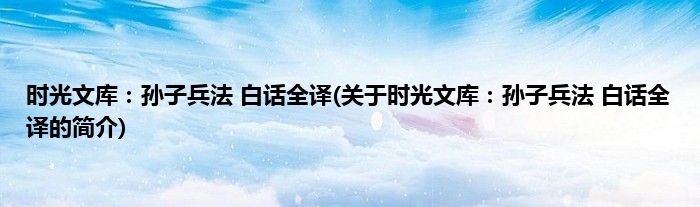 本文关于时光文库:孙子兵法 白话全译的简介就讲解完毕,希望对大家有所帮助。