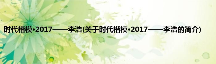 本文关于时代楷模·2017——李浩的简介就讲解完毕,希望对大家有所帮助。