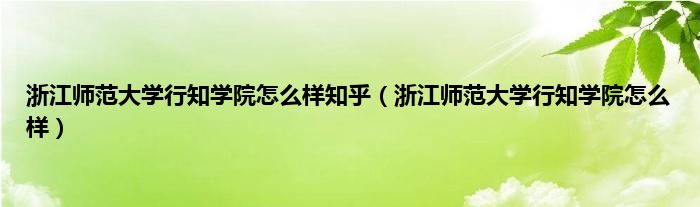以上就是【浙江师范大学行知学院怎么样知乎,浙江师范大学行知学院怎么样】相关内容。