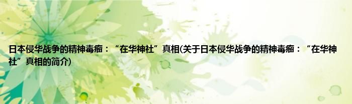 本文关于日本侵华战争的精神毒瘤:“在华神社”真相的简介就讲解完毕,希望对大家有所帮助。