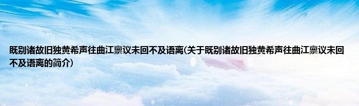 大家好,既别诸故旧独黄希声往曲江禀议未回不及语离,关于既别诸故旧独黄希声往曲江禀议未回不及语离的简介很多人还不知道,现在让我们一起来看看吧!