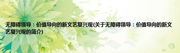 本文关于无障碍领导:价值导向的新文艺复兴观的简介就讲解完毕,希望对大家有所帮助。