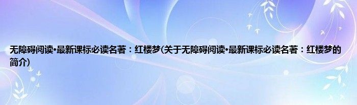本文关于无障碍阅读·最新课标必读名著:红楼梦的简介就讲解完毕,希望对大家有所帮助。