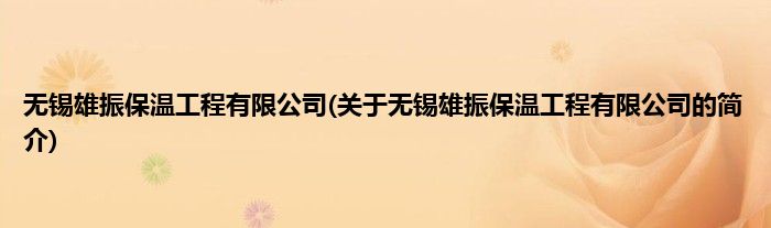 本文关于无锡雄振保温工程有限公司的简介就讲解完毕,希望对大家有所帮助。