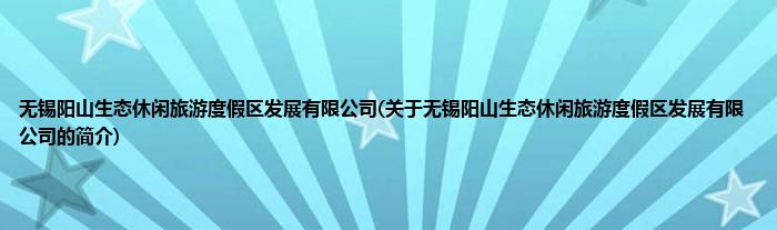 无锡阳山生态休闲旅游度假区发展有限公司(关于无锡阳山生态休闲旅游度假区发展有限公司的简介)