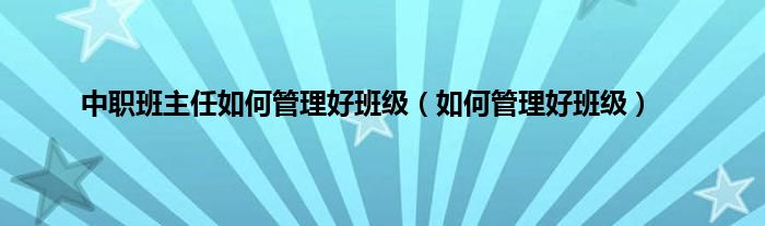 以上就是【中职班主任如何管理好班级,如何管理好班级】相关内容。