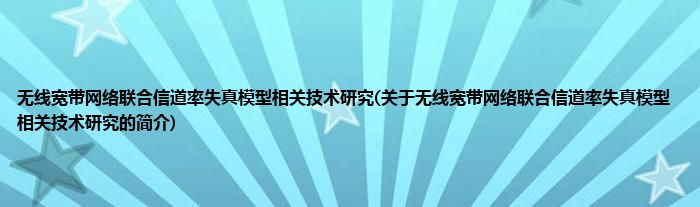 大家好,无线宽带网络联合信道率失真模型相关技术研究,关于无线宽带网络联合信道率失真模型相关技术研究的简介很多人还不知道,现在让我们一起来看看吧!