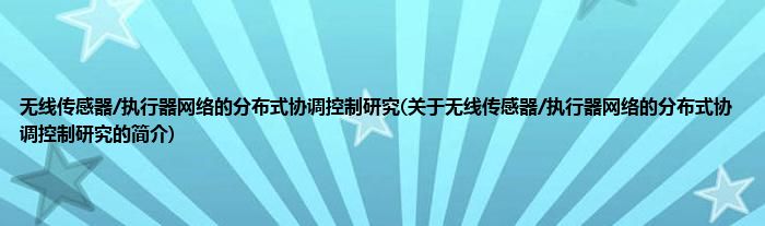 大家好,无线传感器/执行器网络的分布式协调控制研究,关于无线传感器/执行器网络的分布式协调控制研究的简介很多人还不知道,现在让我们一起来看看吧!