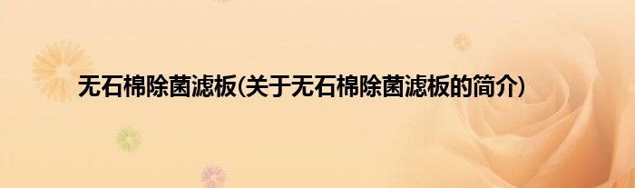 本文关于无石棉除菌滤板的简介就讲解完毕,希望对大家有所帮助。