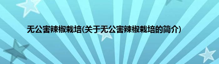 本文关于无公害辣椒栽培的简介就讲解完毕,希望对大家有所帮助。