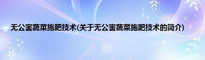 本文关于无公害蔬菜施肥技术的简介就讲解完毕,希望对大家有所帮助。