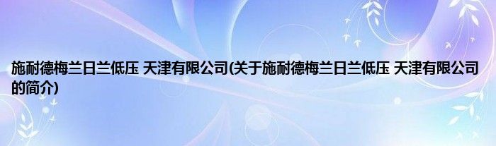 施耐德梅兰日兰低压 天津有限公司(关于施耐德梅兰日兰低压 天津有限公司的简介)