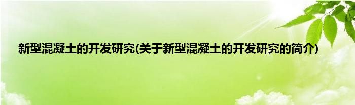 本文关于新型混凝土的开发研究的简介就讲解完毕,希望对大家有所帮助。