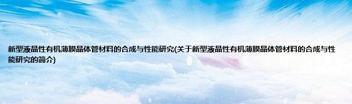 本文关于新型液晶性有机薄膜晶体管材料的合成与性能研究的简介就讲解完毕,希望对大家有所帮助。