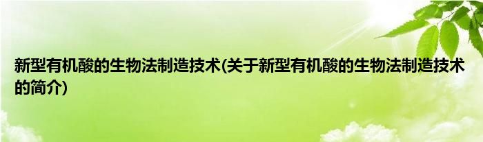 本文关于新型有机酸的生物法制造技术的简介就讲解完毕,希望对大家有所帮助。