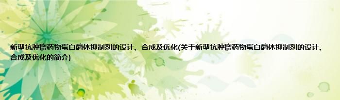 大家好,新型抗肿瘤药物蛋白酶体抑制剂的设计、合成及优化,关于新型抗肿瘤药物蛋白酶体抑制剂的设计、合成及优化的简介很多人还不知道,现在让我们一起来看看吧!