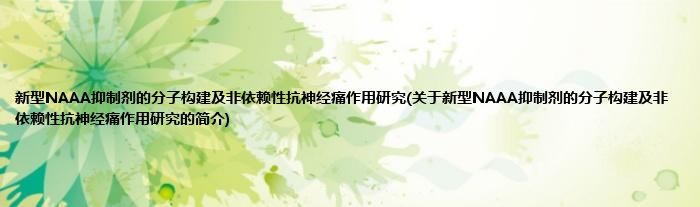 本文关于新型NAAA抑制剂的分子构建及非依赖性抗神经痛作用研究的简介就讲解完毕,希望对大家有所帮助。