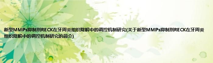 本文关于新型MMPs抑制剂RECK在牙周炎组织降解中的调控机制研究的简介就讲解完毕,希望对大家有所帮助。