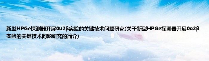 本文关于新型HPGe探测器开展0υ2β实验的关键技术问题研究的简介就讲解完毕,希望对大家有所帮助。