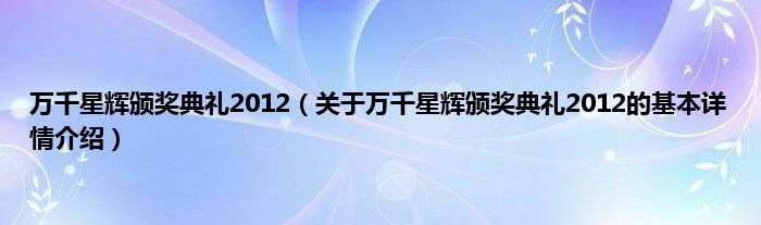 本文关于万千星辉颁奖典礼2012的基本详情介绍就讲解完毕,希望对大家有所帮助。