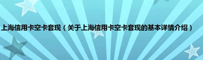 本文关于上海信用卡空卡套现的基本详情介绍就讲解完毕,希望对大家有所帮助。