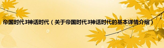 本文关于帝国时代3神话时代的基本详情介绍就讲解完毕,希望对大家有所帮助。