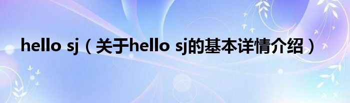 本文关于hello sj的基本详情介绍就讲解完毕,希望对大家有所帮助。