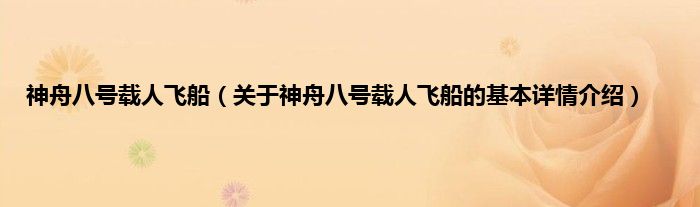本文关于神舟八号载人飞船的基本详情介绍就讲解完毕,希望对大家有所帮助。