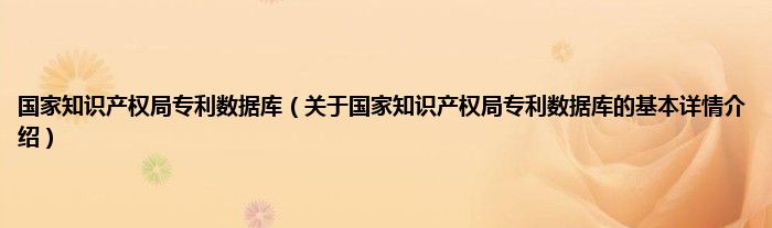 本文关于国家知识产权局专利数据库的基本详情介绍就讲解完毕,希望对大家有所帮助。
