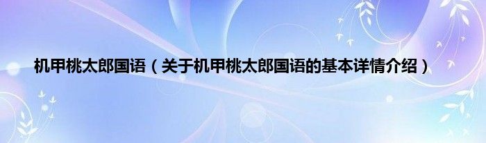 本文关于机甲桃太郎国语的基本详情介绍就讲解完毕,希望对大家有所帮助。