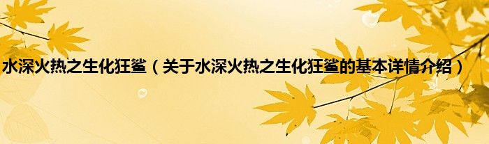 本文关于水深火热之生化狂鲨的基本详情介绍就讲解完毕,希望对大家有所帮助。