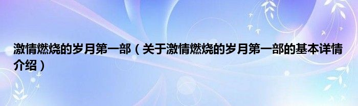 本文关于激情燃烧的岁月第一部的基本详情介绍就讲解完毕,希望对大家有所帮助。