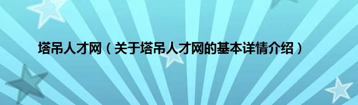 本文关于塔吊人才网的基本详情介绍就讲解完毕,希望对大家有所帮助。