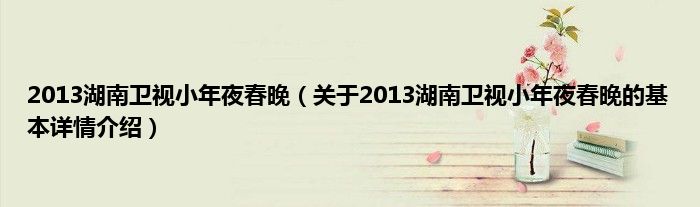 本文关于2013湖南卫视小年夜春晚的基本详情介绍就讲解完毕,希望对大家有所帮助。