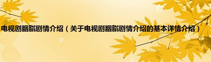 本文关于电视剧胭脂剧情介绍的基本详情介绍就讲解完毕,希望对大家有所帮助。