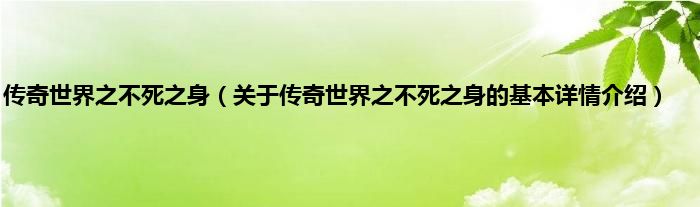 本文关于传奇世界之不死之身的基本详情介绍就讲解完毕,希望对大家有所帮助。
