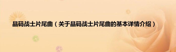 本文关于晶码战士片尾曲的基本详情介绍就讲解完毕,希望对大家有所帮助。