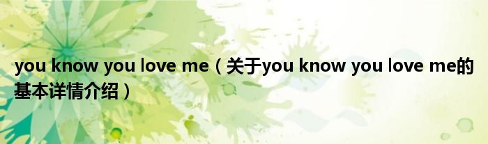 本文关于you know you love me的基本详情介绍就讲解完毕,希望对大家有所帮助。
