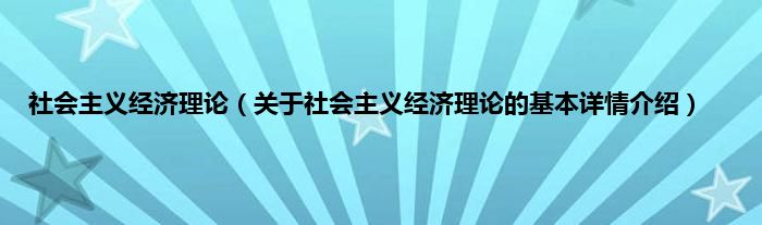 本文关于社会主义经济理论的基本详情介绍就讲解完毕,希望对大家有所帮助。