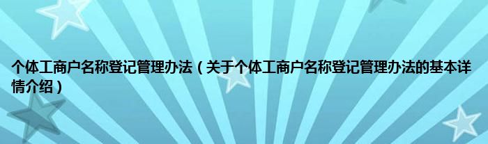 本文关于个体工商户名称登记管理办法的基本详情介绍就讲解完毕,希望对大家有所帮助。
