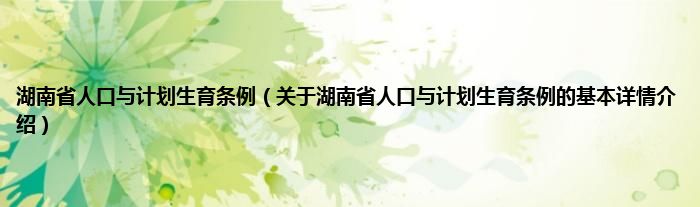 本文关于湖南省人口与计划生育条例的基本详情介绍就讲解完毕,希望对大家有所帮助。