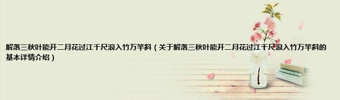 本文关于解落三秋叶能开二月花过江千尺浪入竹万竿斜的基本详情介绍就讲解完毕,希望对大家有所帮助。