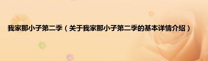 本文关于我家那小子第二季的基本详情介绍就讲解完毕,希望对大家有所帮助。