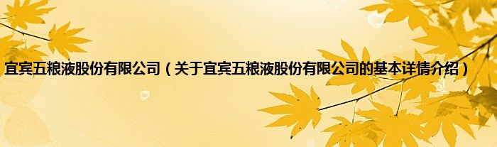 本文关于宜宾五粮液股份有限公司的基本详情介绍就讲解完毕,希望对大家有所帮助。
