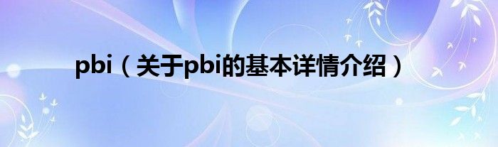大家好我是小蝌蚪,pbi,关于pbi的基本详情介绍很多人还不知道,那么现在让我们一起来看看吧!