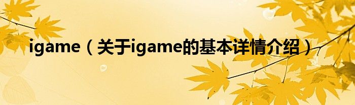 本文关于igame的基本详情介绍就讲解完毕,希望对大家有所帮助。
