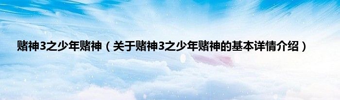 本文关于赌神3之少年赌神的基本详情介绍就讲解完毕,希望对大家有所帮助。
