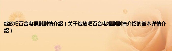 本文关于绽放吧百合电视剧剧情介绍的基本详情介绍就讲解完毕,希望对大家有所帮助。